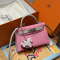 최고퀄 에르메스 올수공 켈리 미니 핑크 & 라이트 그레이 엡송 가죽 은장