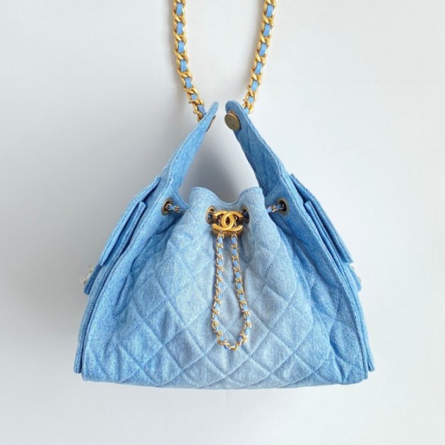 샤넬 25SS 워시드 데님 골드 메탈 라지 백 라이트 블루