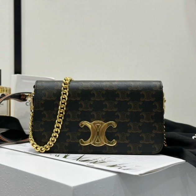 셀린느 트리옹프 체인 숄더백 라피아 197993