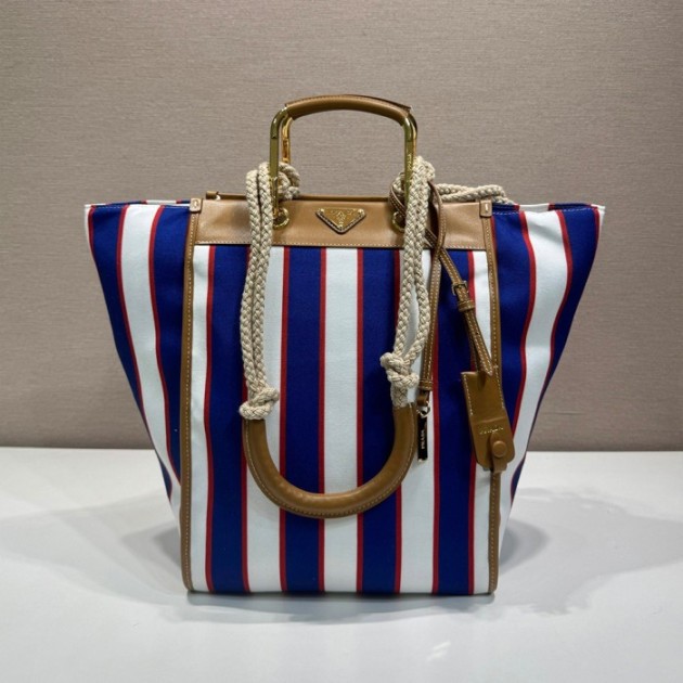 최고퀄 프라다 라지 프린트 캔버스 및 가죽 토트백 1BG561