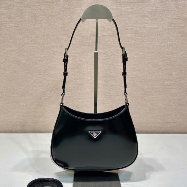 프라다 클레오 브러시드 가죽 숄더백 블랙