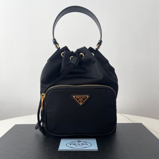 프라다 듀엣 리나일론 버킷 백 블랙 1BH038