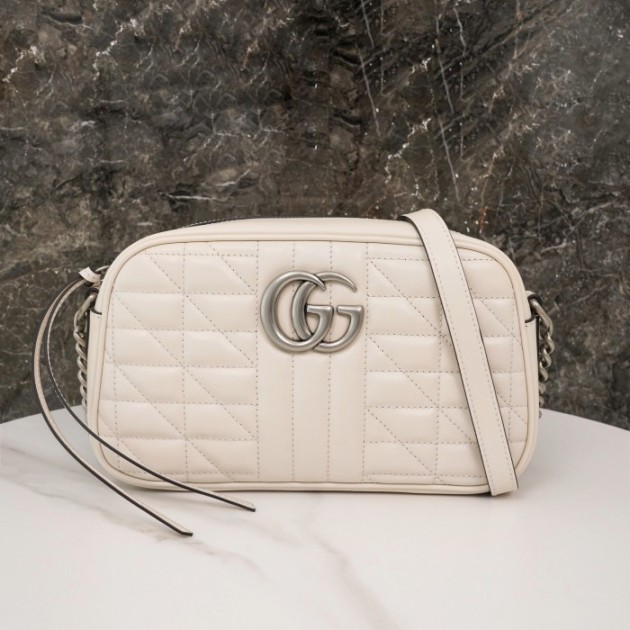 구찌 GG 마몽 마틀라세 스몰 숄더백 화이트