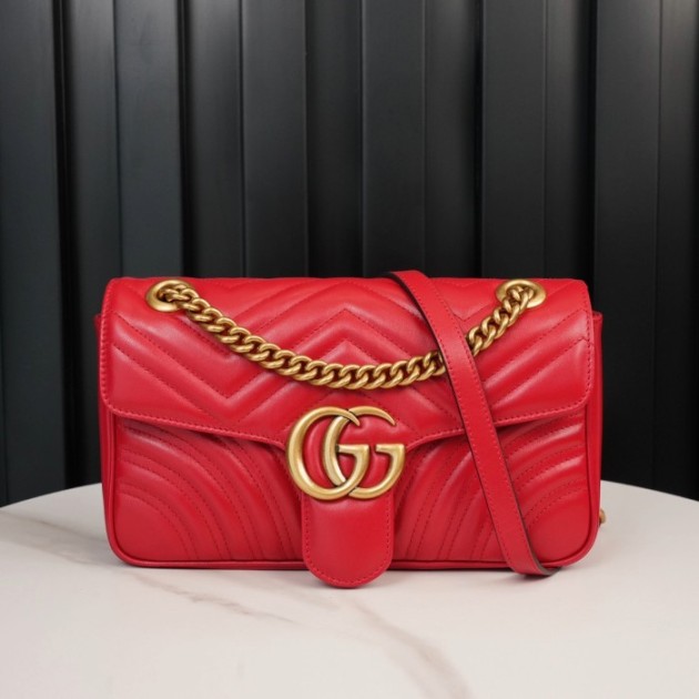 구찌 GG 마몽 마틀라세 스몰 체인 숄더백 레드