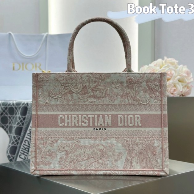 디올 미디엄 북 토트백 에크루 핑크 트왈 드 주이 자수 > 여성가방
