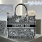 디올 미디엄 북 토트백 트왈 드 주이 소바쥬 자수 화이트 네이비 블루