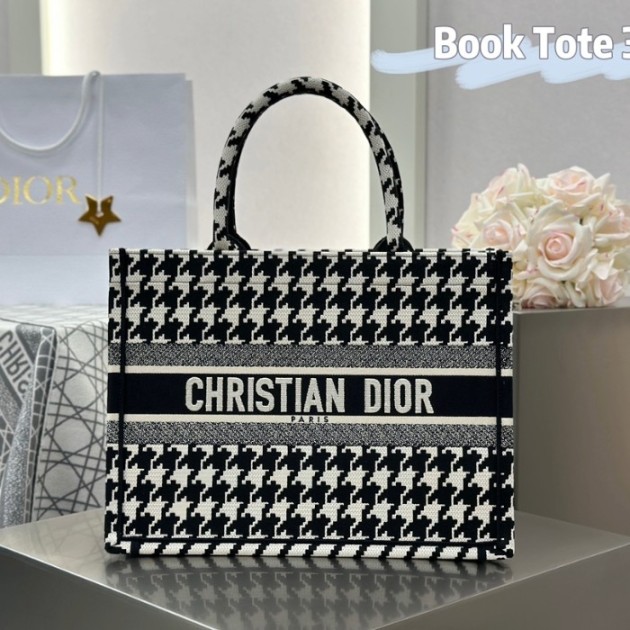 디올 미디엄 북 토트백 마이크로 하운즈투스 자수 블랙 화이트