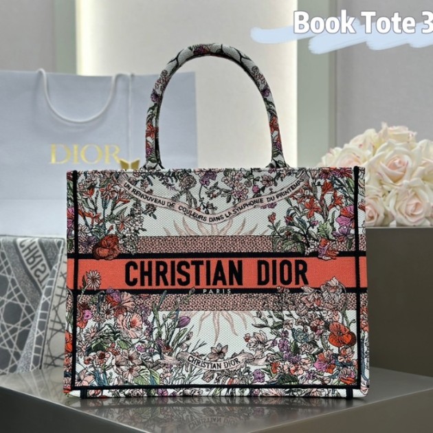 디올 미디엄 북 토트백 에크루 멀티컬러