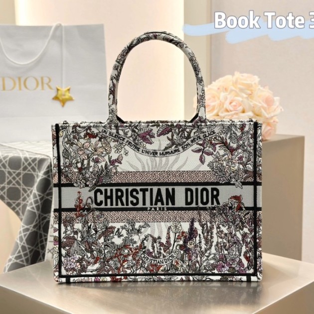 디올 미디엄 북 토트백 에크루 멀티컬러