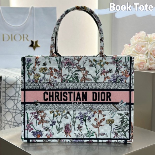 디올 미디엄 북 토트백 허바륨 자수 화이트 멀티컬러 > 여성가방