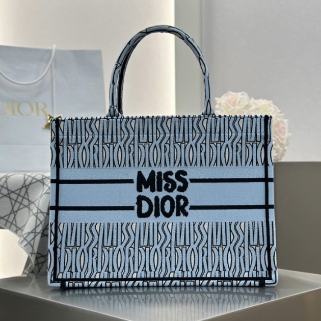 디올 미디엄 북 토트백 미스디올 블루