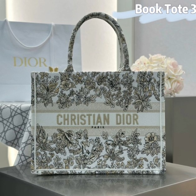 디올 미디엄 북 토트백 라떼 & 골드 톤 Millefiori Unicorn 모티브 자수 > 여성가방