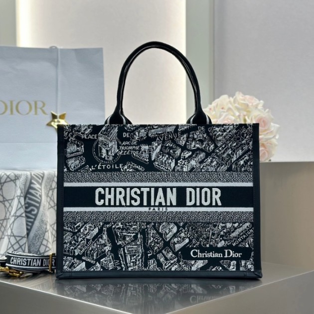 디올 미디엄 북 토트백 블랙 화이트 플랜 드 파리 자수 > 여성가방