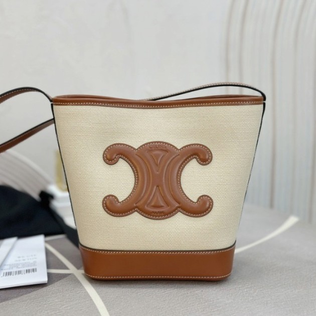 셀린느 카프스킨 퀴르 트리옹프 스몰 버킷 숄더백 화이트 탄 198243