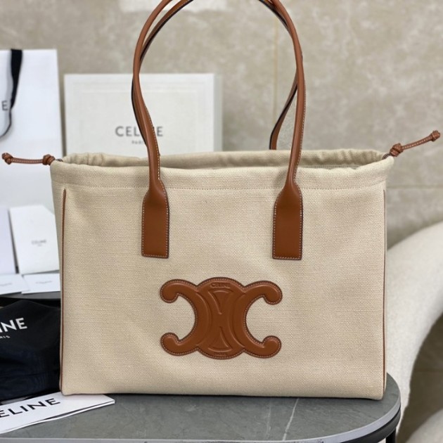 셀린느 퀴르 트리오페 드로우스트링 라지 토트백 내추럴 탄 199973