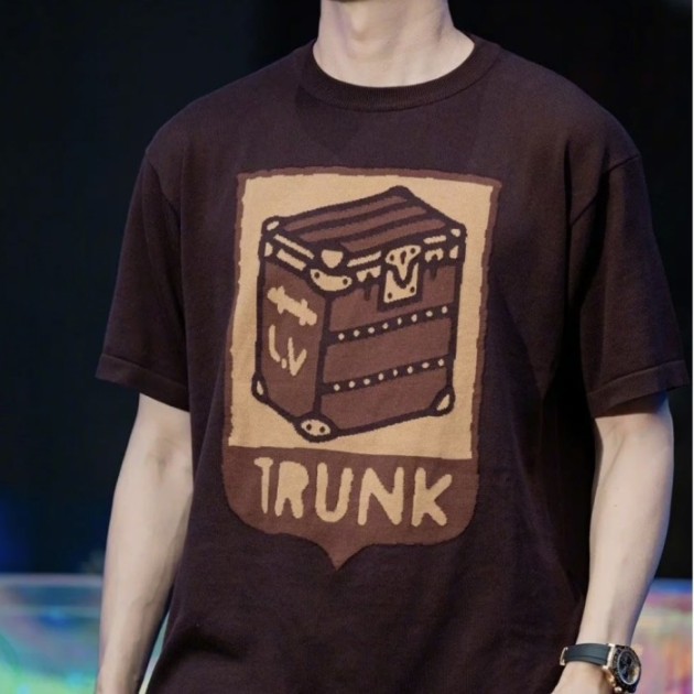 루이비통 퍼렐 인타르시아 트렁크 니트 반팔티 브라운